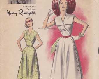 1950s Beautiful Draped Shoulder Princess Line Cocktail Party Evening Dress Pattern Advance 6993 Two Lovely Styles Special Ocassion Dress Bust 30 Vintage Sewing Pattern Factory Folded